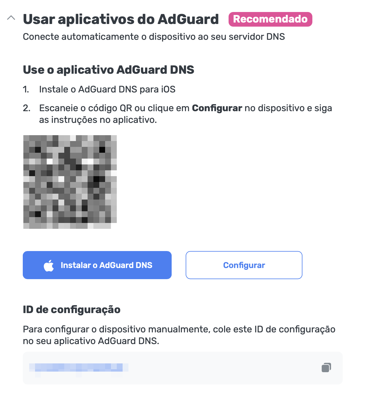 Em Usar o app AdGuard DNS, escolha um dos métodos de configuração: