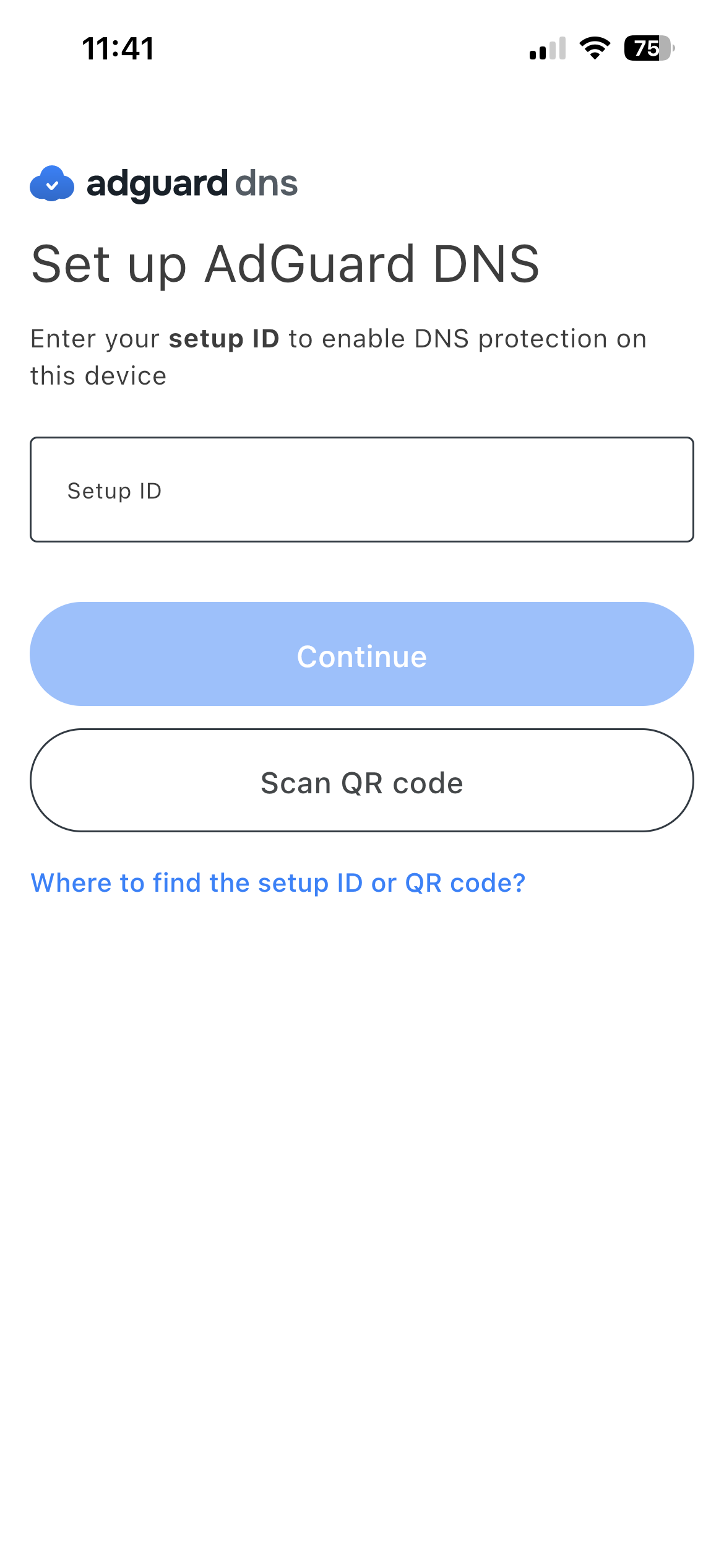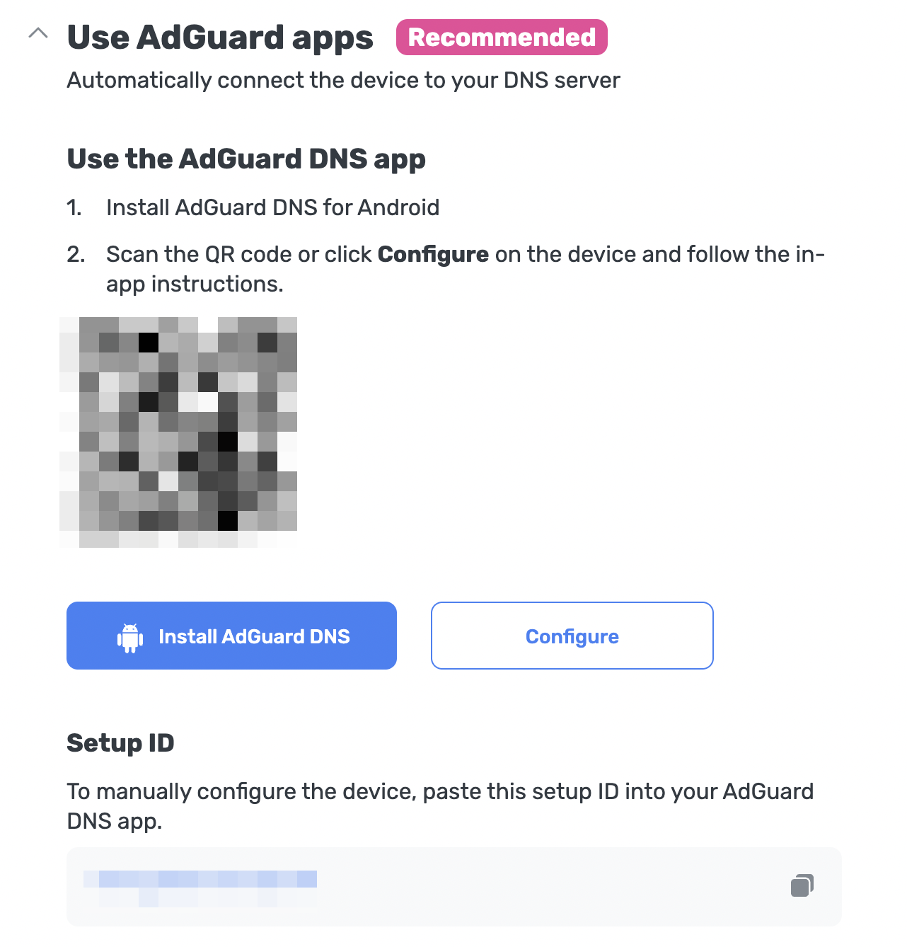 Under Use the AdGuard DNS app, choose one of these setup methods: