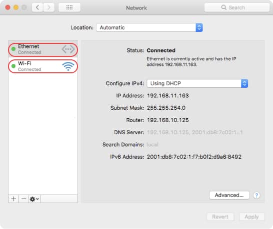Select your Wi-Fi network or wired connection.