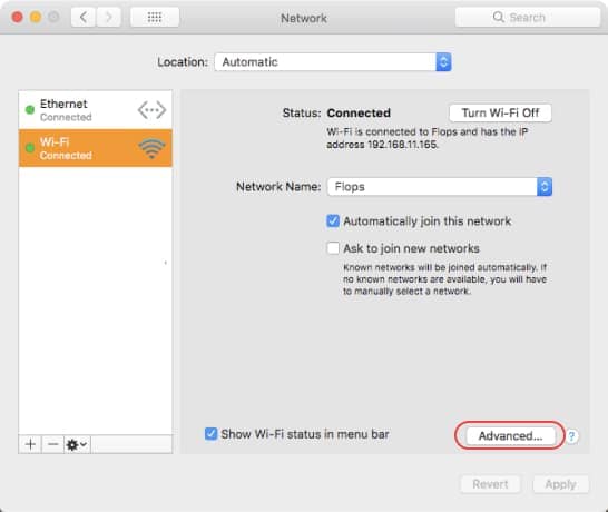 Click the Wi-Fi network to which you are connected.