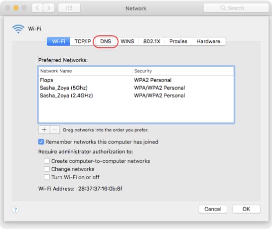Select the DNS tab.